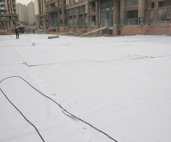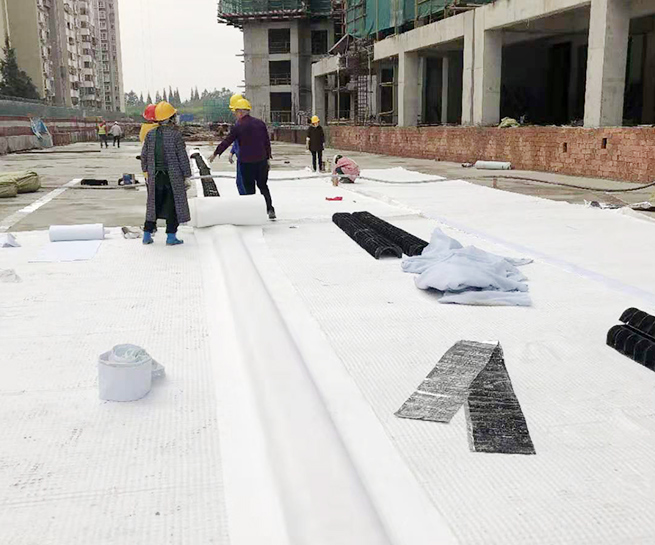 高分子防護排水異型片自粘土工布卷材是由高密度聚乙烯(HDPE)純白原料,在熔融狀態(tài)下經(jīng)真空吸塑一次成型制成,制造出的單向連續(xù)密閉殼體型凸起的板狀材料,形成一種膜、殼連接,具有立+體排水空間和一定支撐剛度,液體、氣體可以在其內(nèi)流動的防護排水卷材。